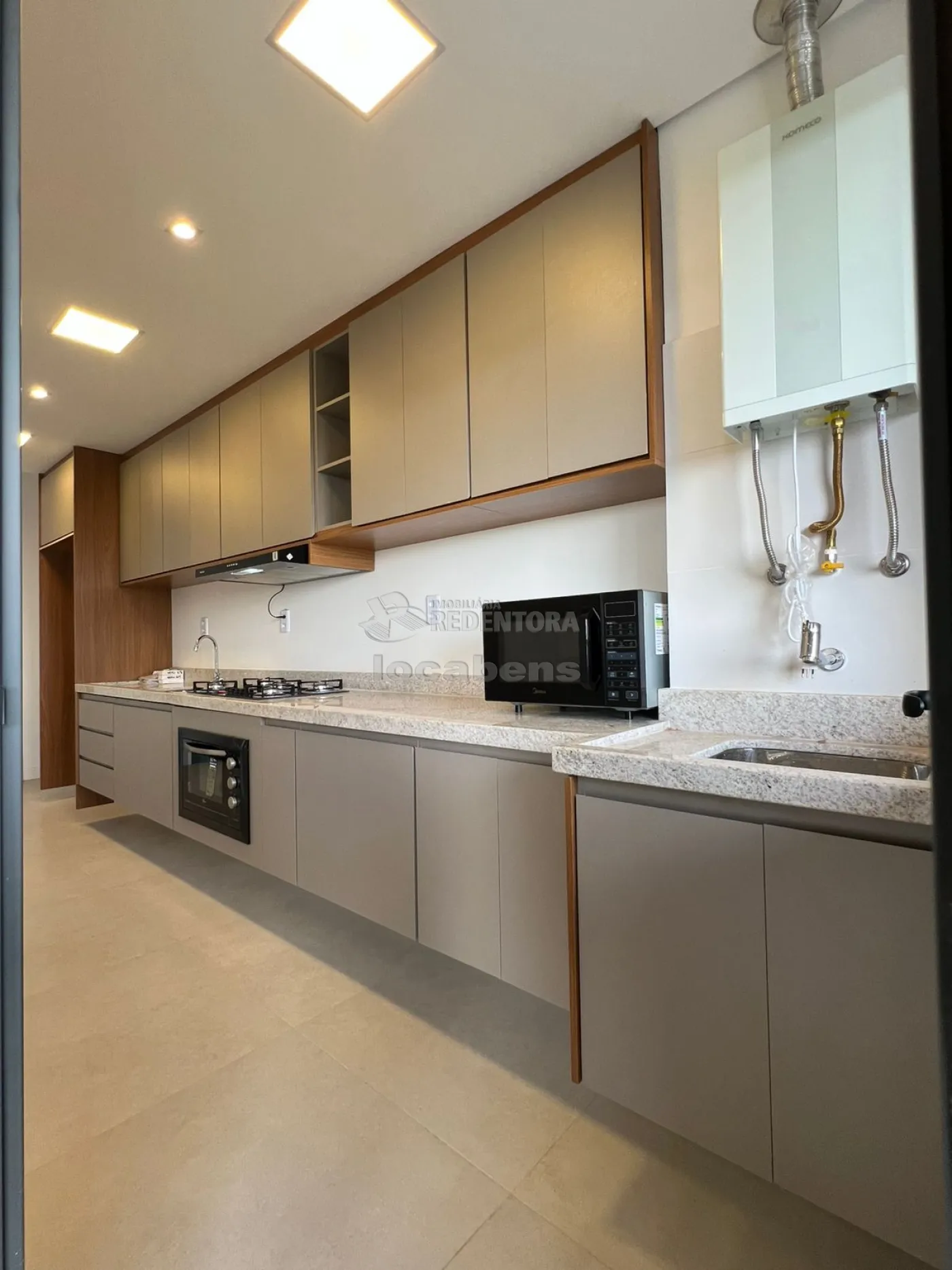 - Cozinha planejada com cooktop, coifa, forno elétrico, micro-ondas