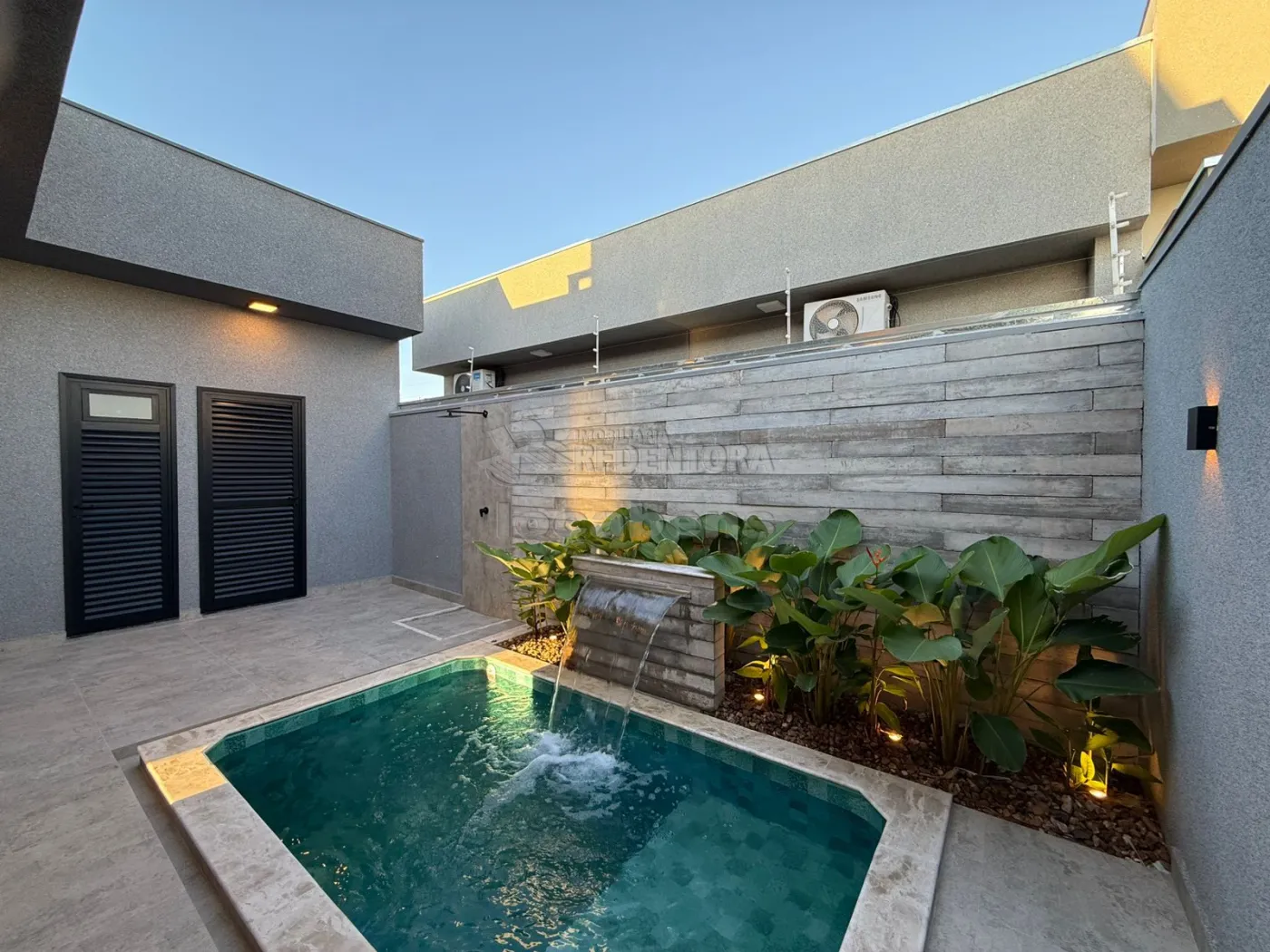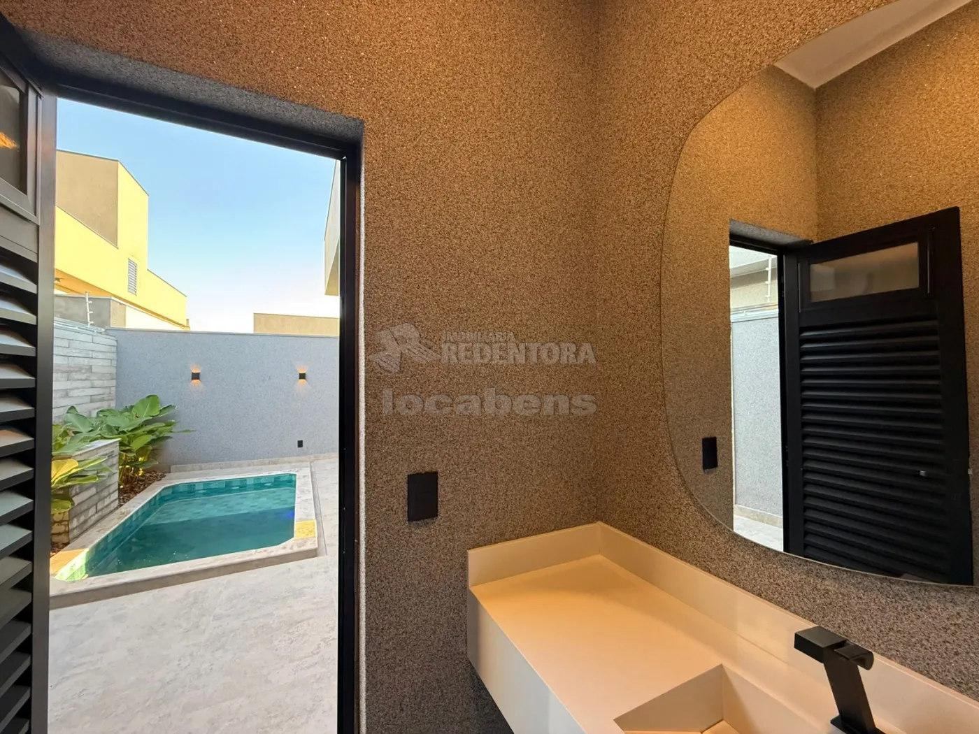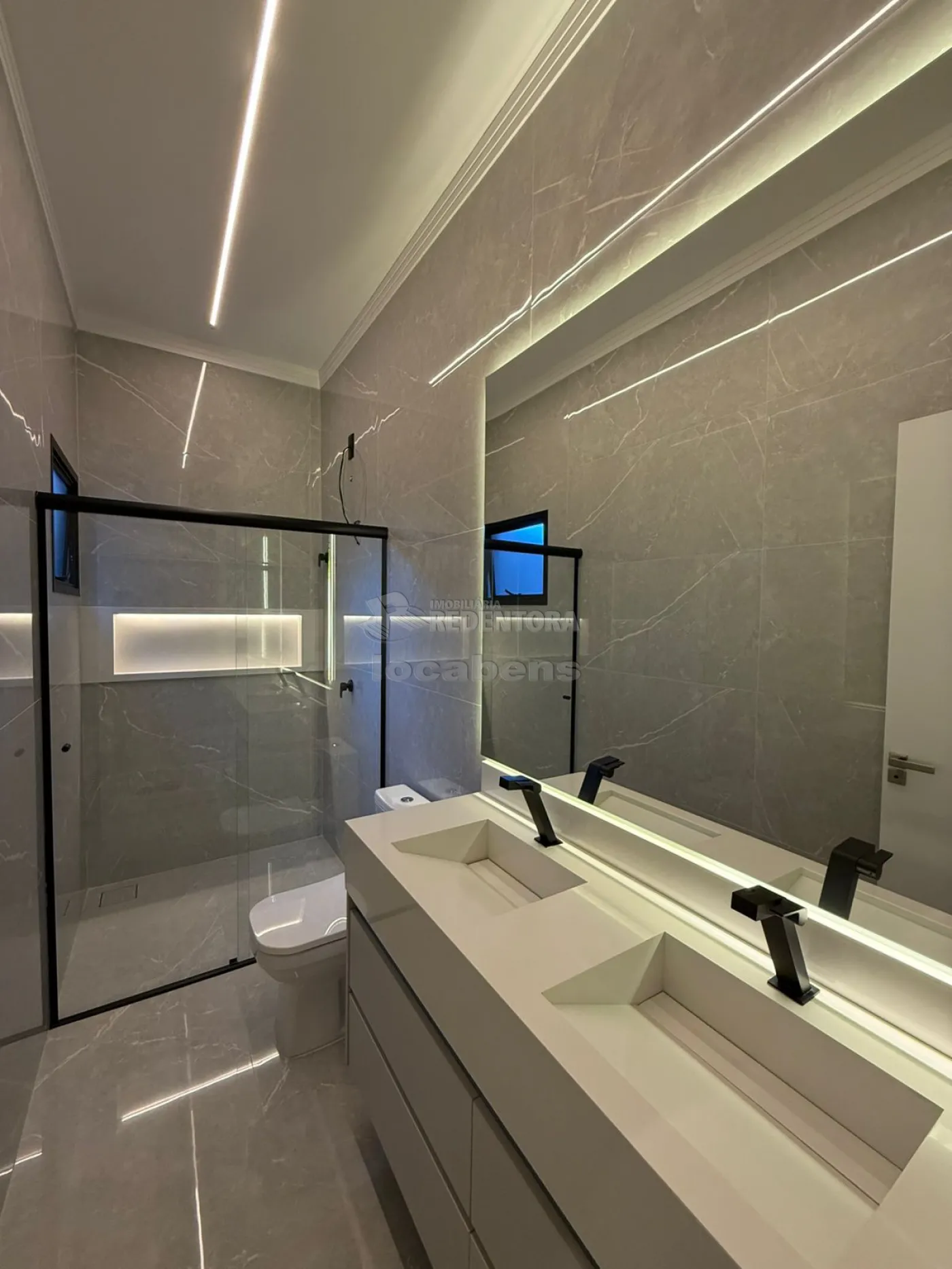 Garagem coberta para 02 carros, lavanderia, piscina, lavabo, banheiro com espelho, box e nichos iluminados.