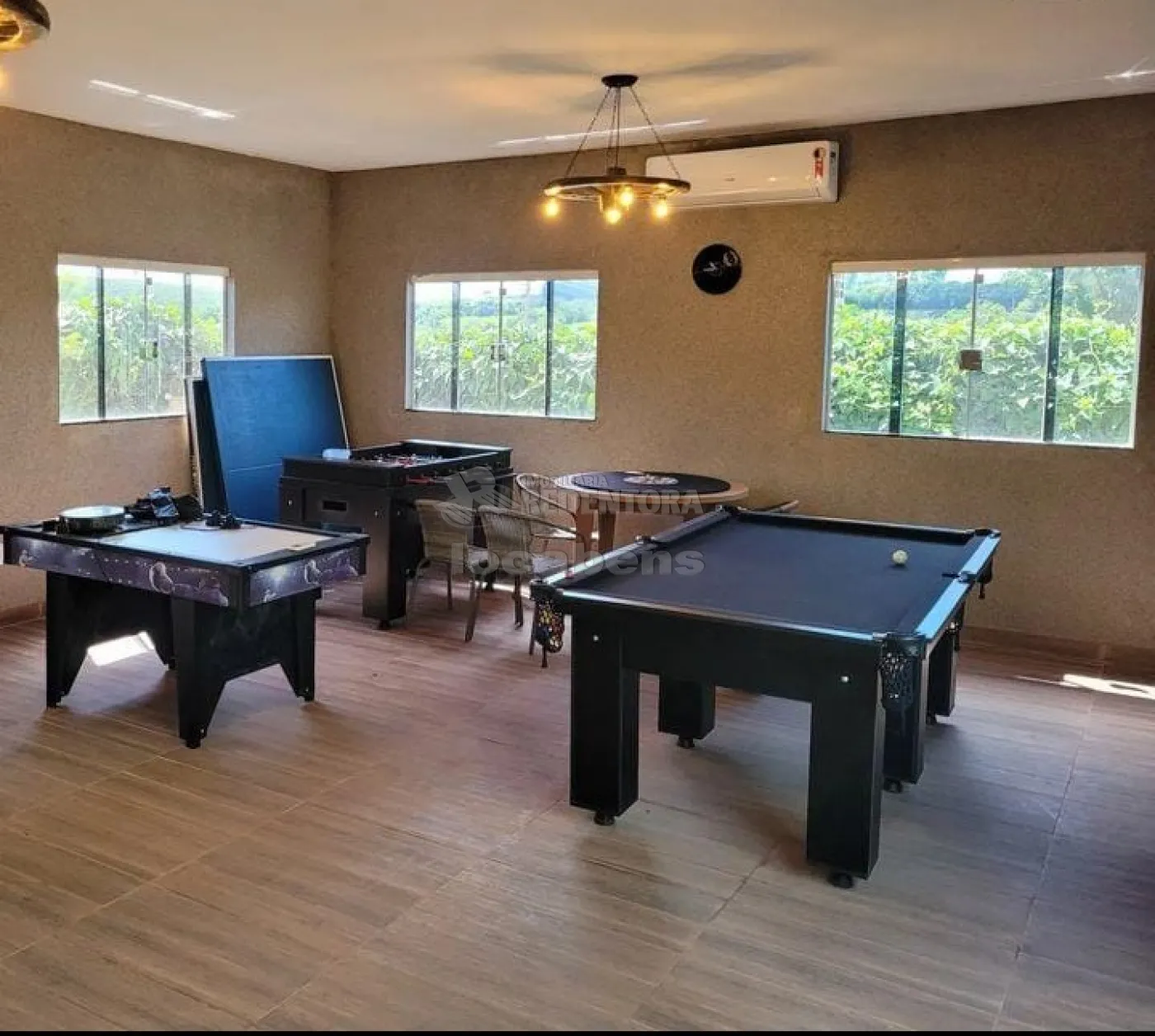 Contendo, salão de jogos com mesas (sinuca, pebolim, tênis de mesa, hockey de mesa e mesa para cartas), espaço destinado a pista de dança, piscina aquecida e com led, pomar de frutíferas, fogueira a céu aberto.
