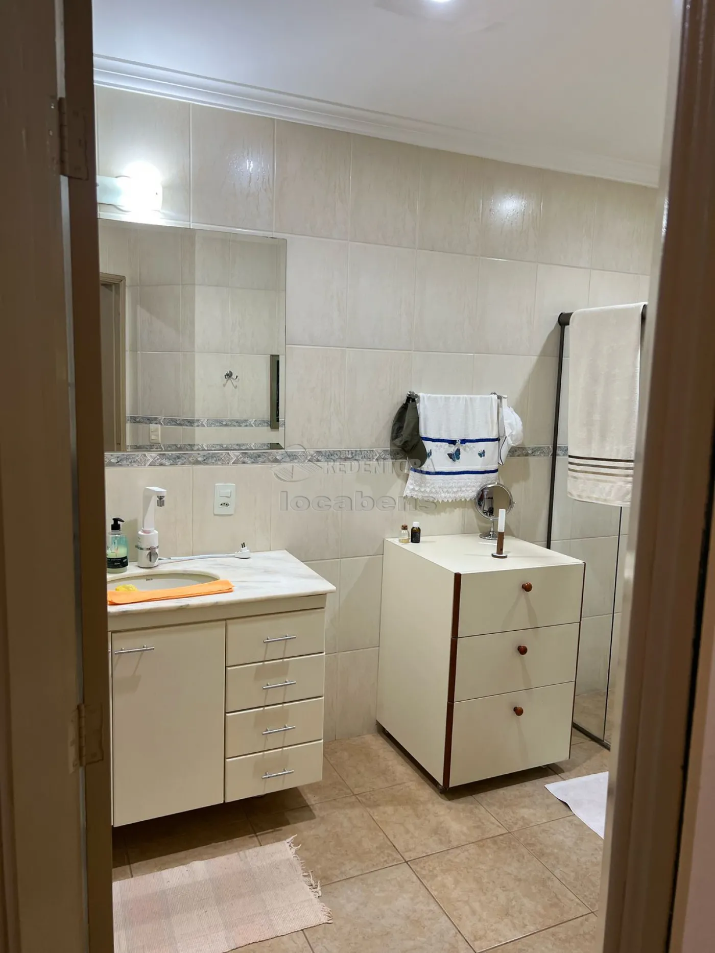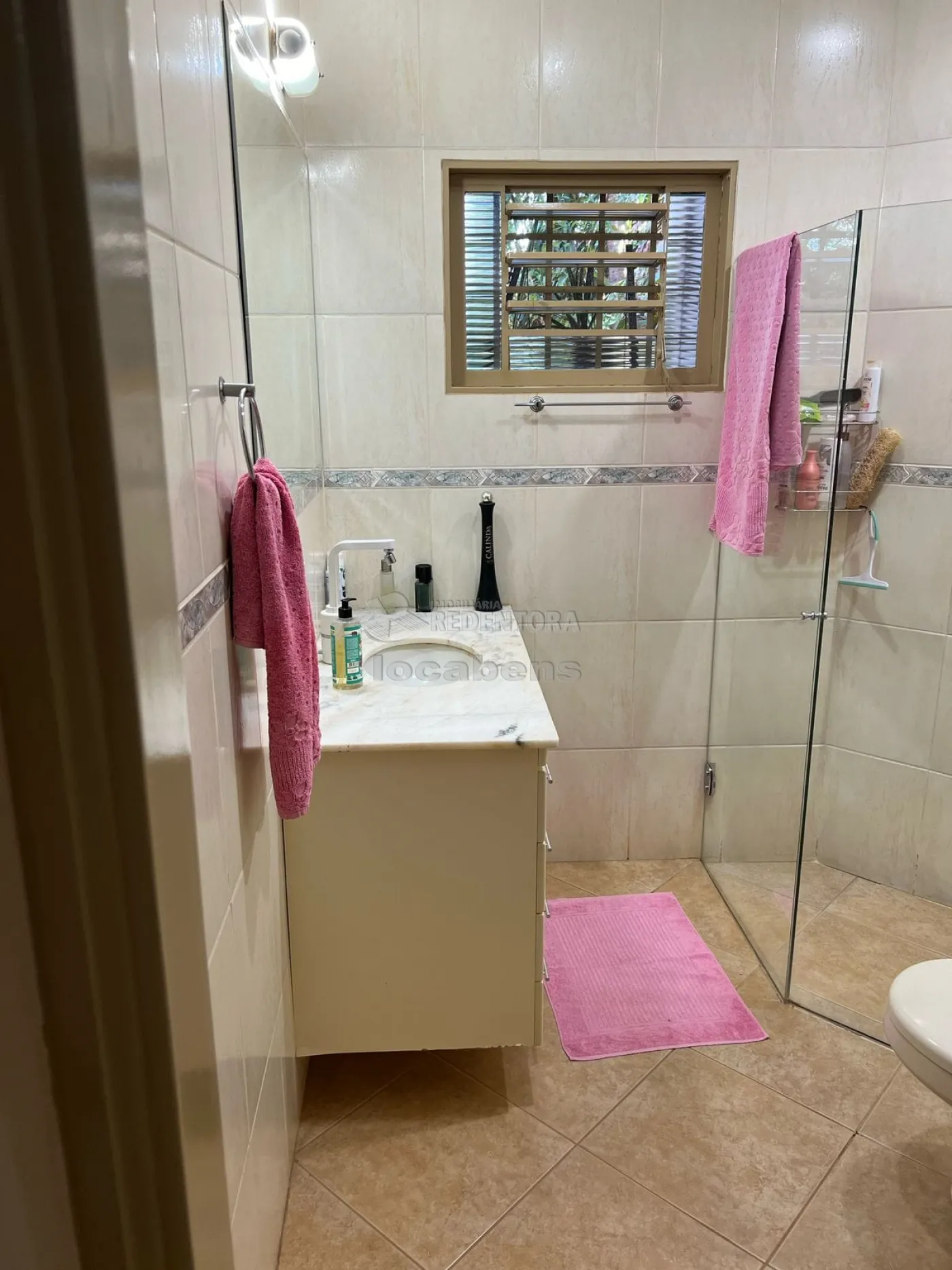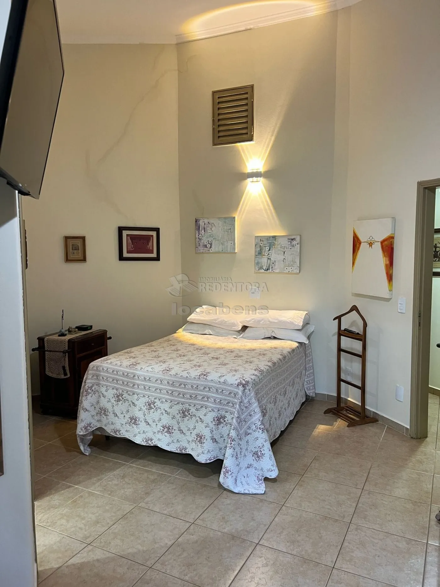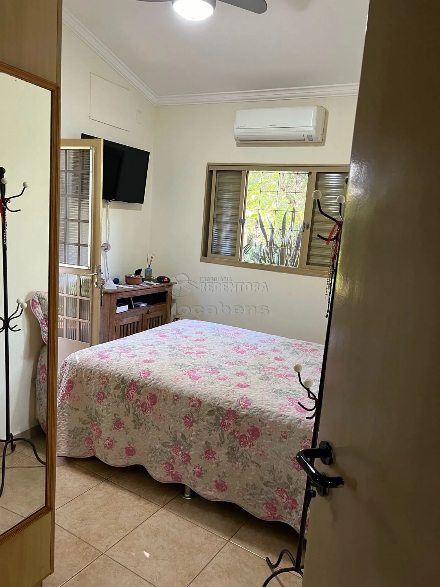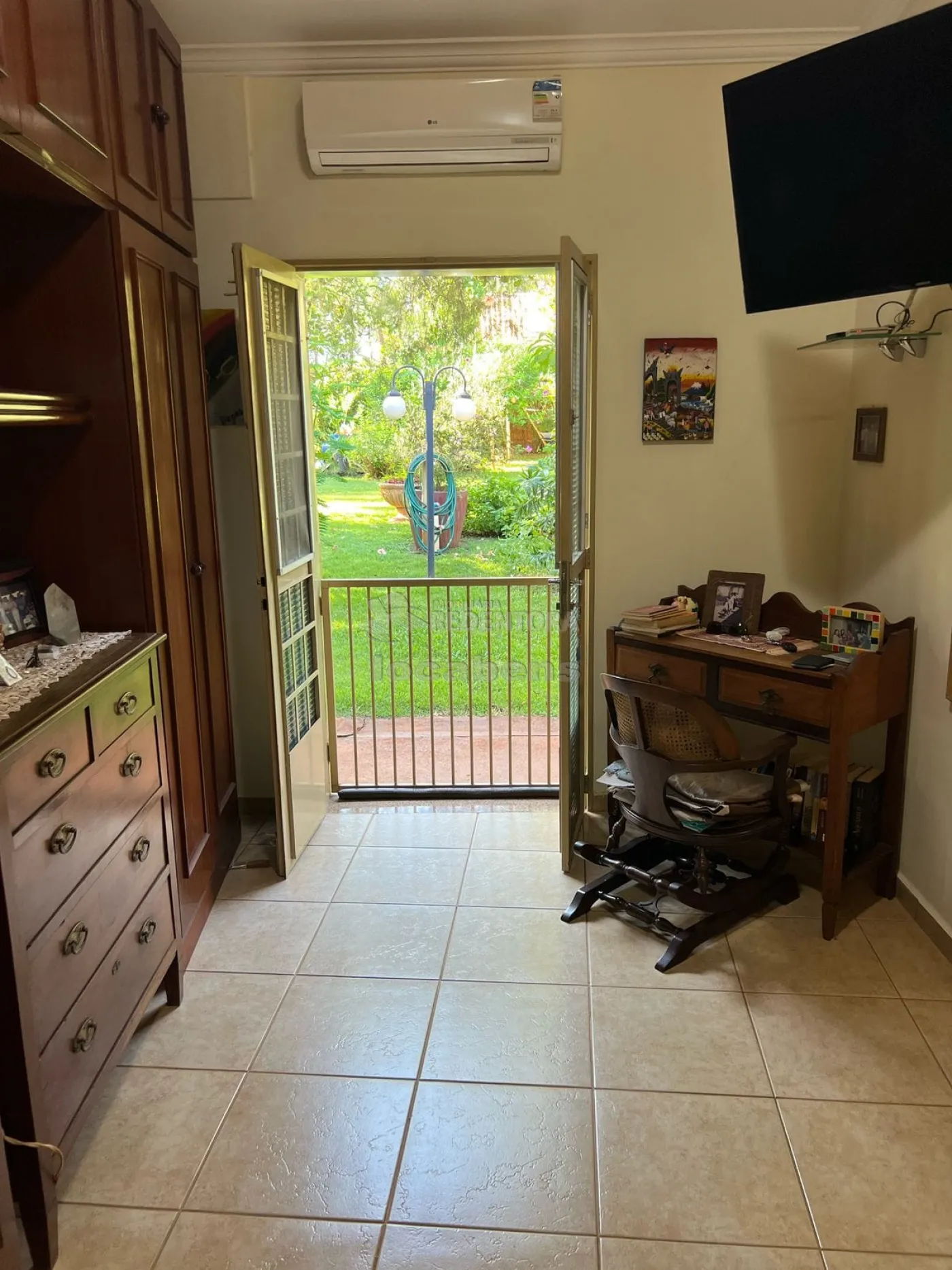 O imóvel conta com 3 suítes espaçosas, todas equipadas com armários embutidos, ar-condicionado, ventiladores de teto e acesso direto ao jardim, proporcionando praticidade e bem-estar. Os banheiros são completos, com box em blindex.