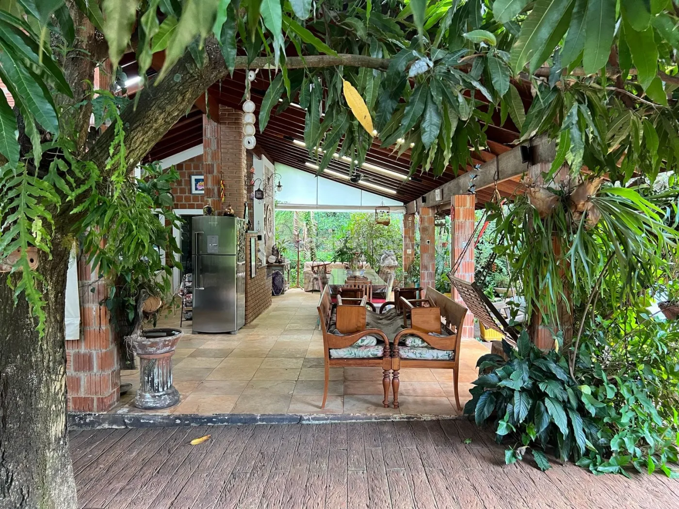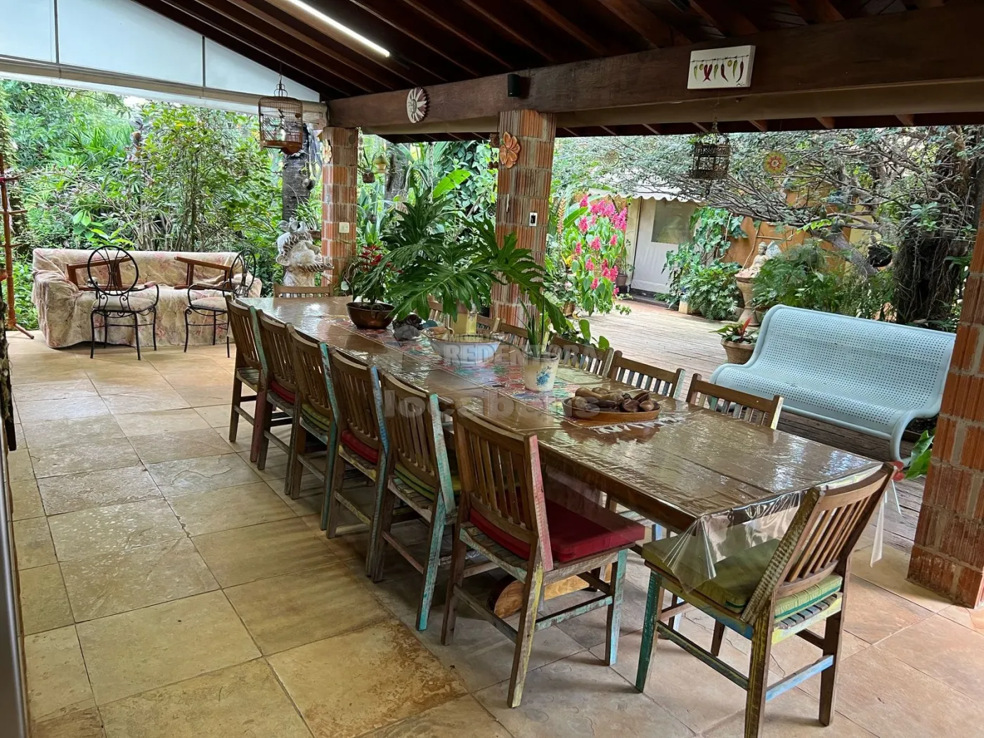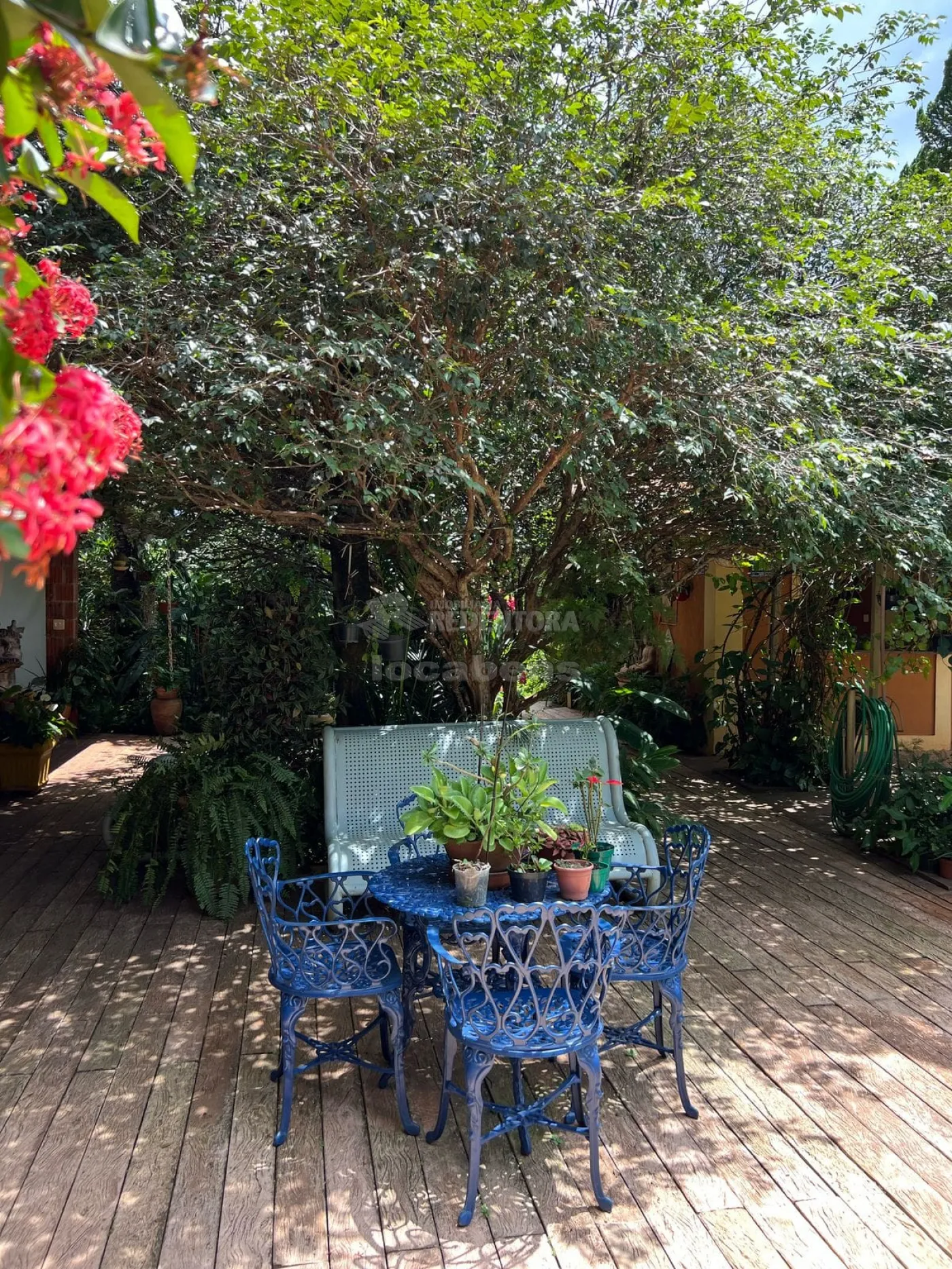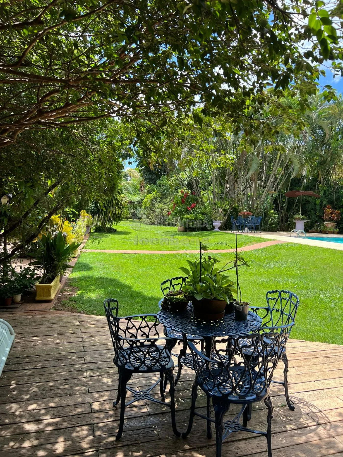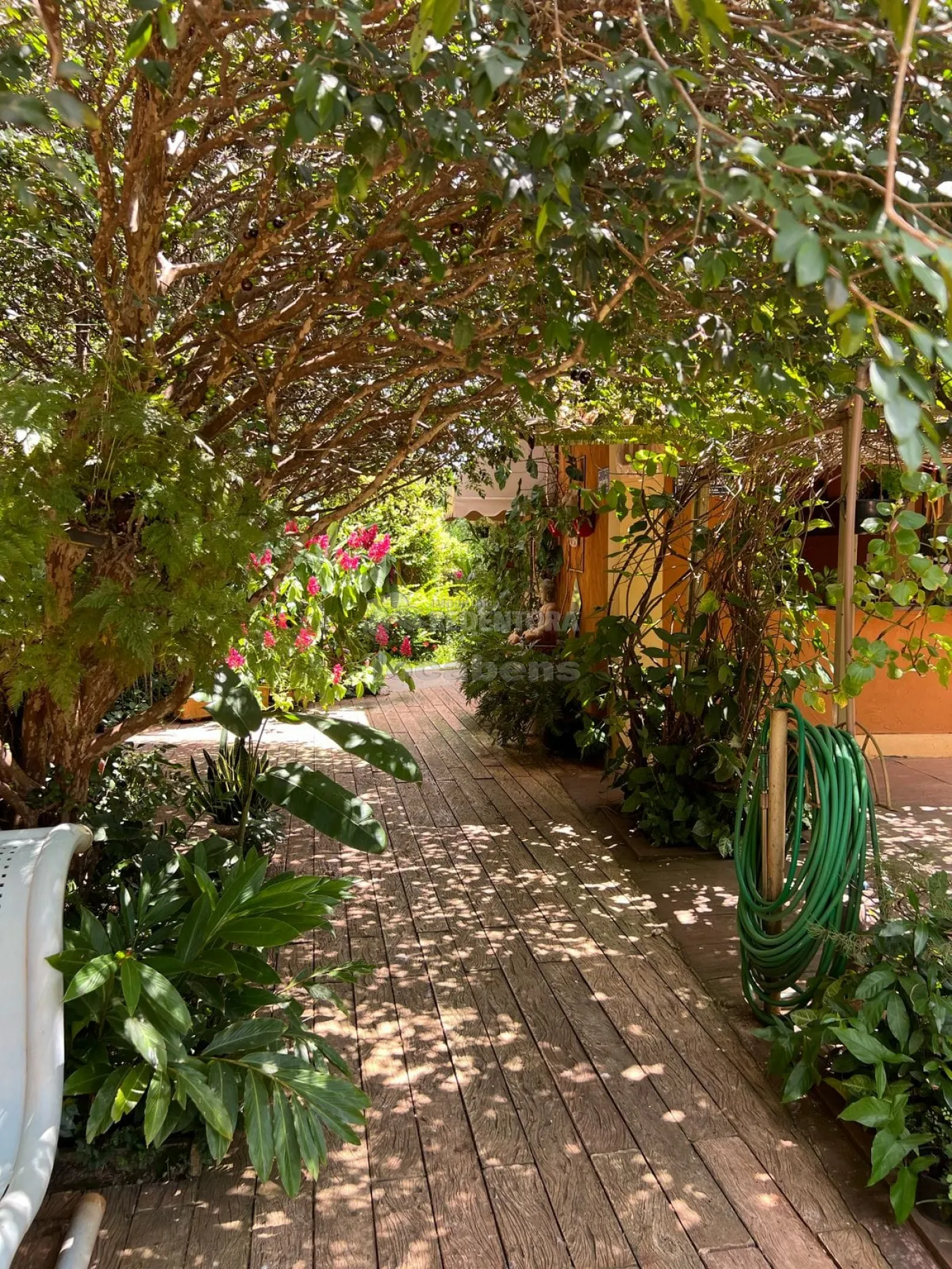 O jardim é simplesmente impecável, com sistema de irrigação automatizada, tanto interna quanto externa, e poço artesiano, garantindo beleza e autonomia.