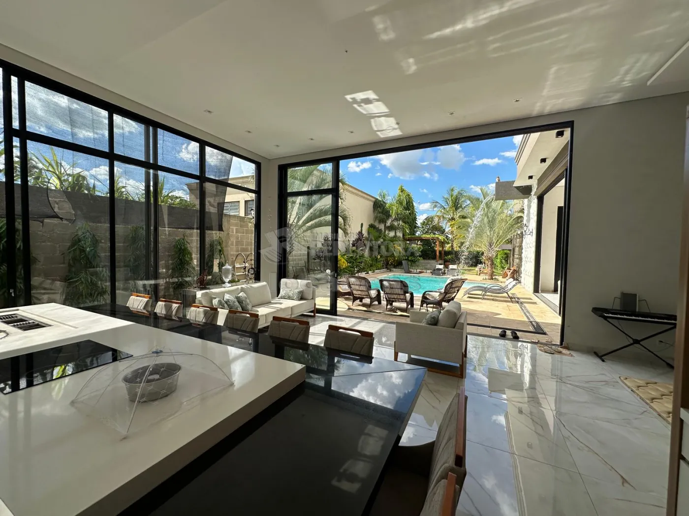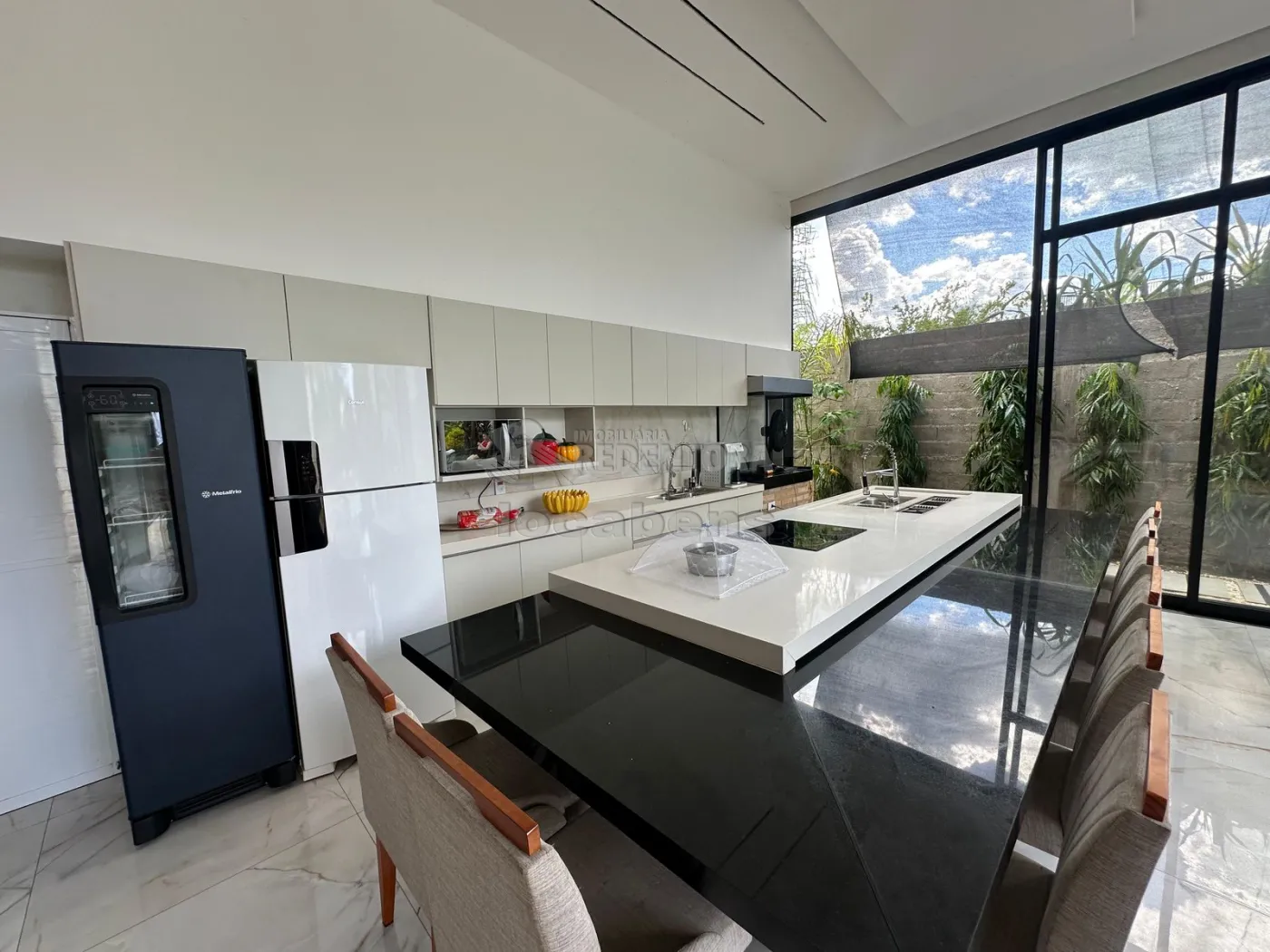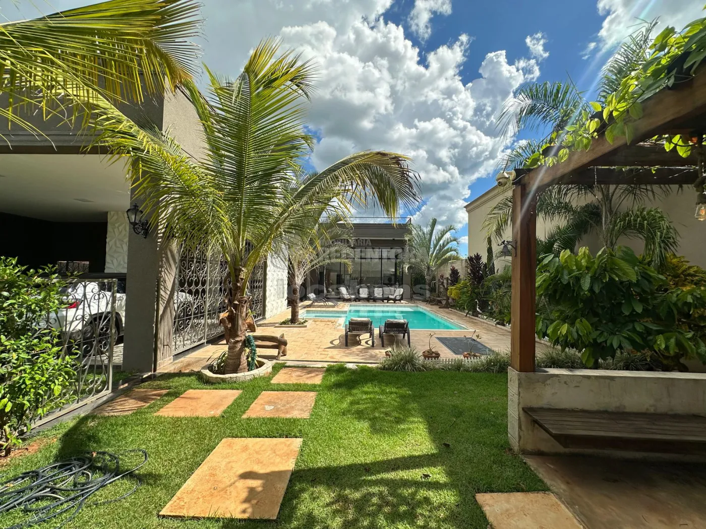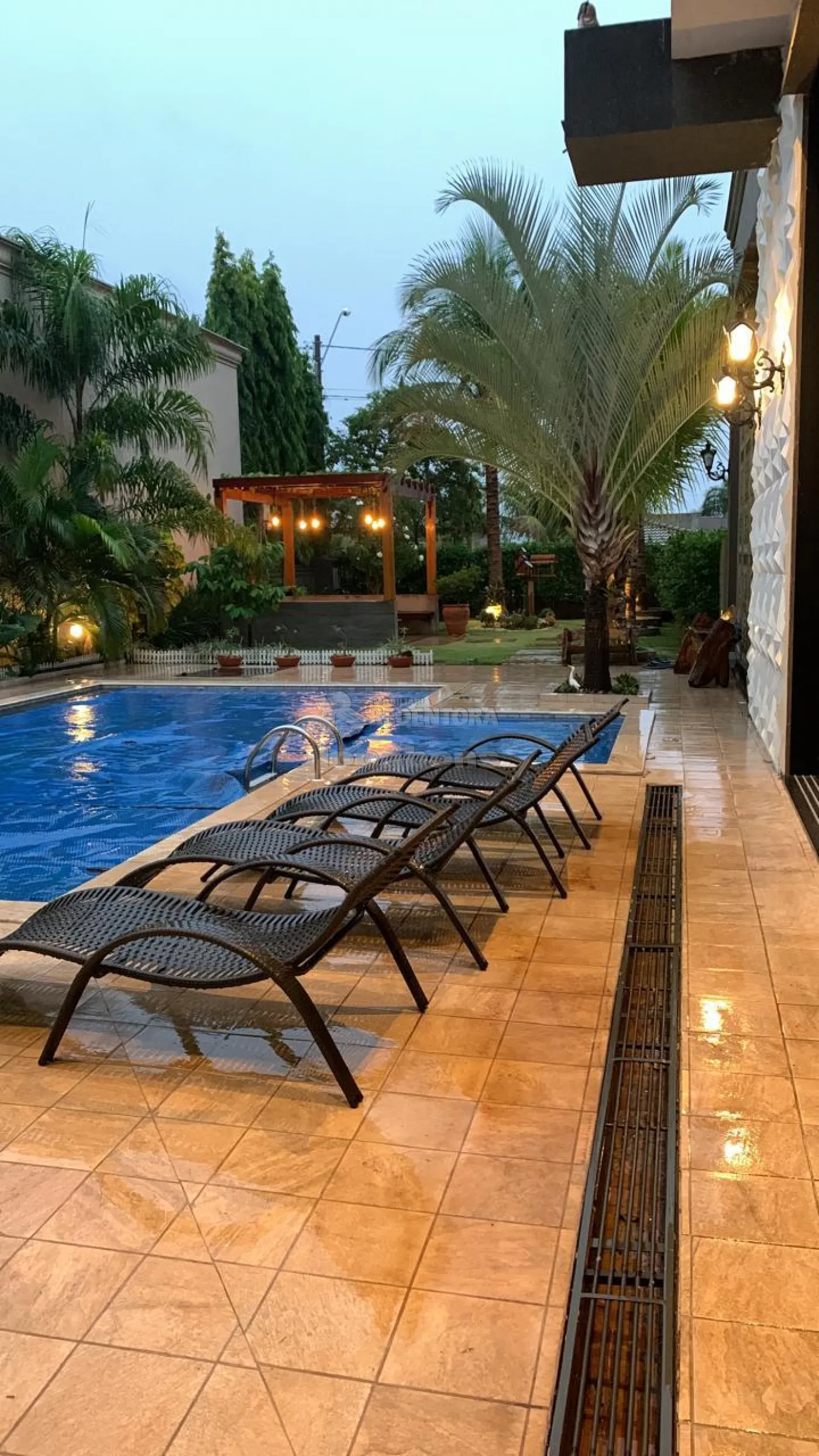 A área gourmet, equipada com churrasqueira, ilha de mármore e armários, é perfeita para encontros sociais e conta com 2 banheiros. A piscina aquecida, com hidromassagem, oferece momentos de lazer durante todo o ano. A casa possui também um mirante, com acesso por escada, e um pomar no fundo, além de uma lavanderia fechada. A garagem comporta até 3 vagas cobertas e 9 vagas descobertas.