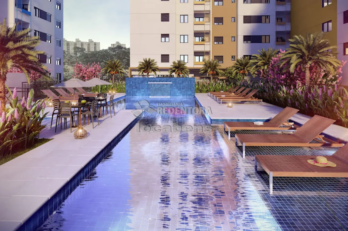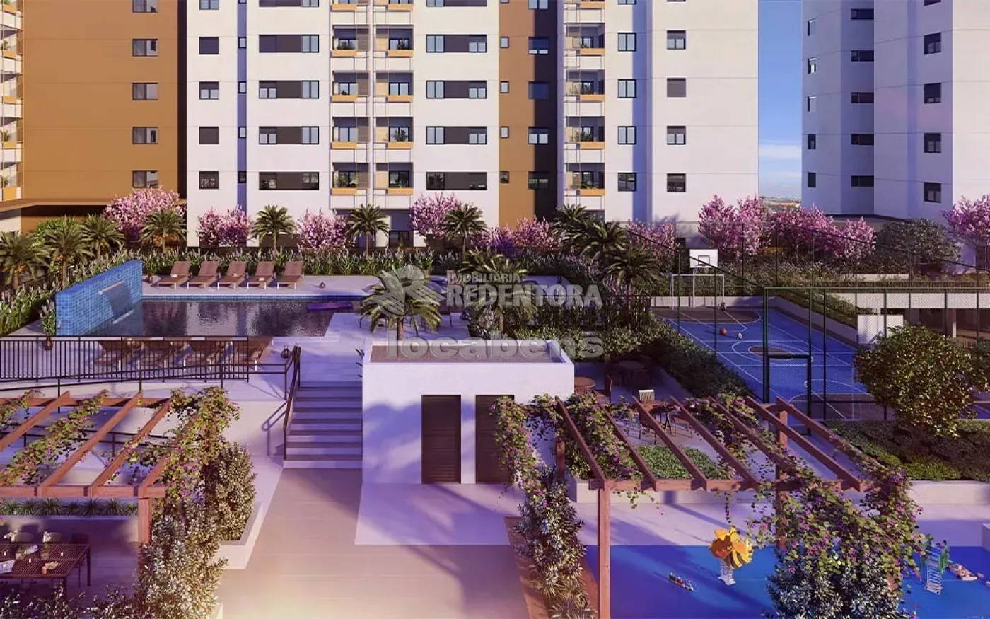 Condomínio com área de lazer completa com piscina, academia, playground, sala de jogos, salão de festas, etc...