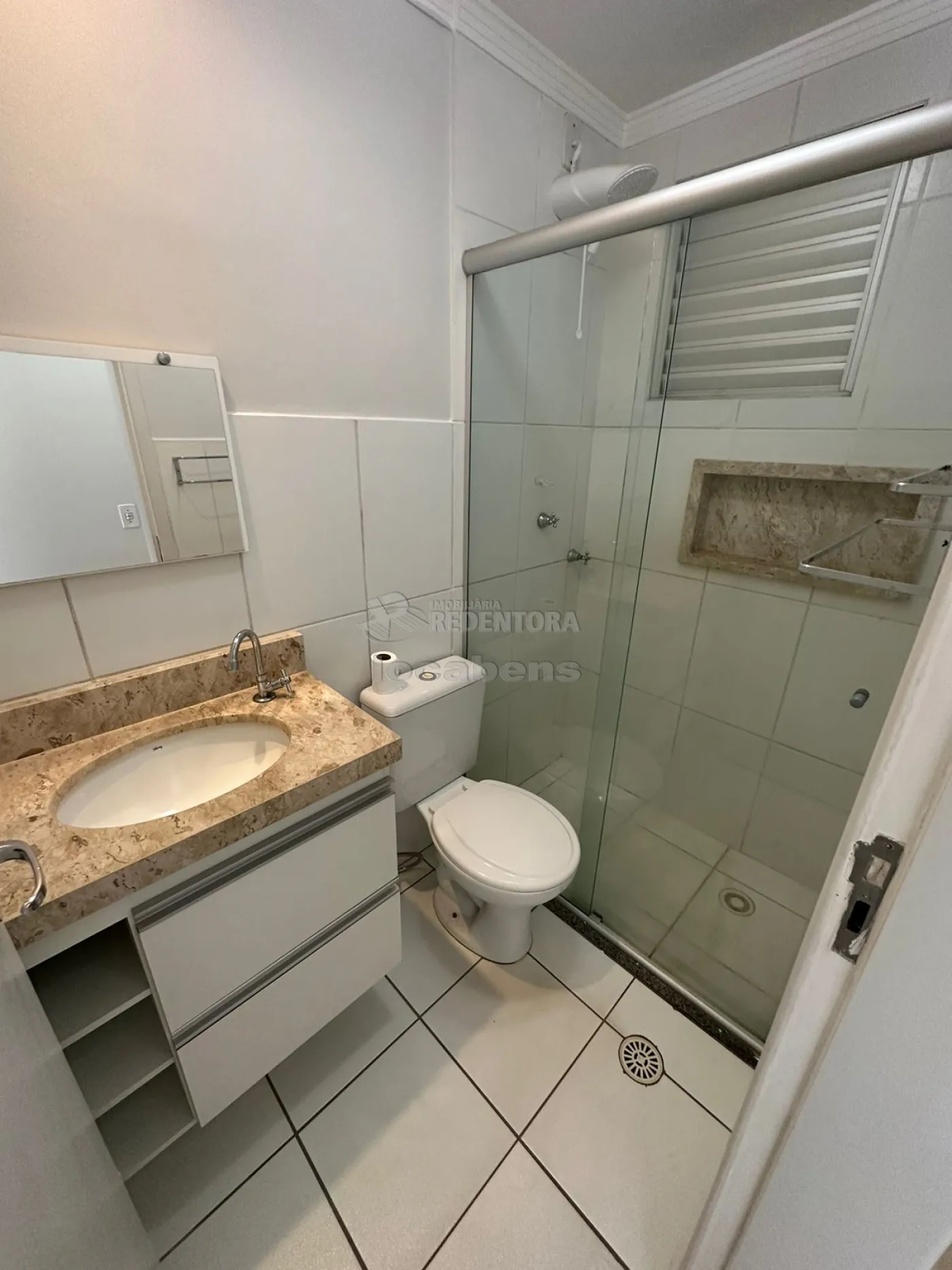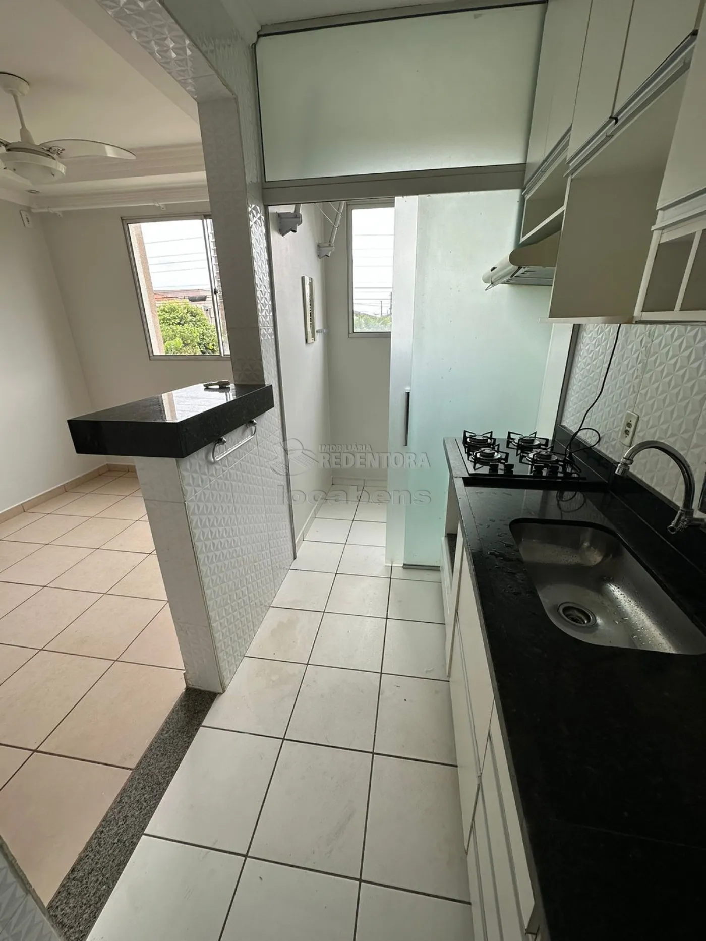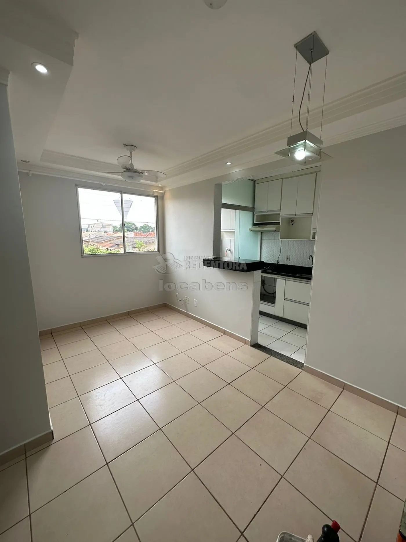 Spazio Rio Missouri - Apartamento de 2 quartos, sendo 1 suíte, armário em ambos os quartos, armário na cozinha e área de serviço. Ar condicionado em um dos dormitórios, ventilador de teto na sala, com controle remoto. Sanca na sala. Box de blindex nos banheiros e separando área de serviço. 1 vaga de garagem. Somente 1 lance de escada. Vista para rua. Situado no primeiro bloco na frente da portaria.