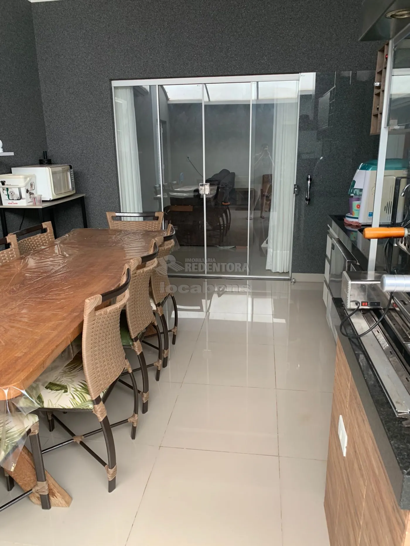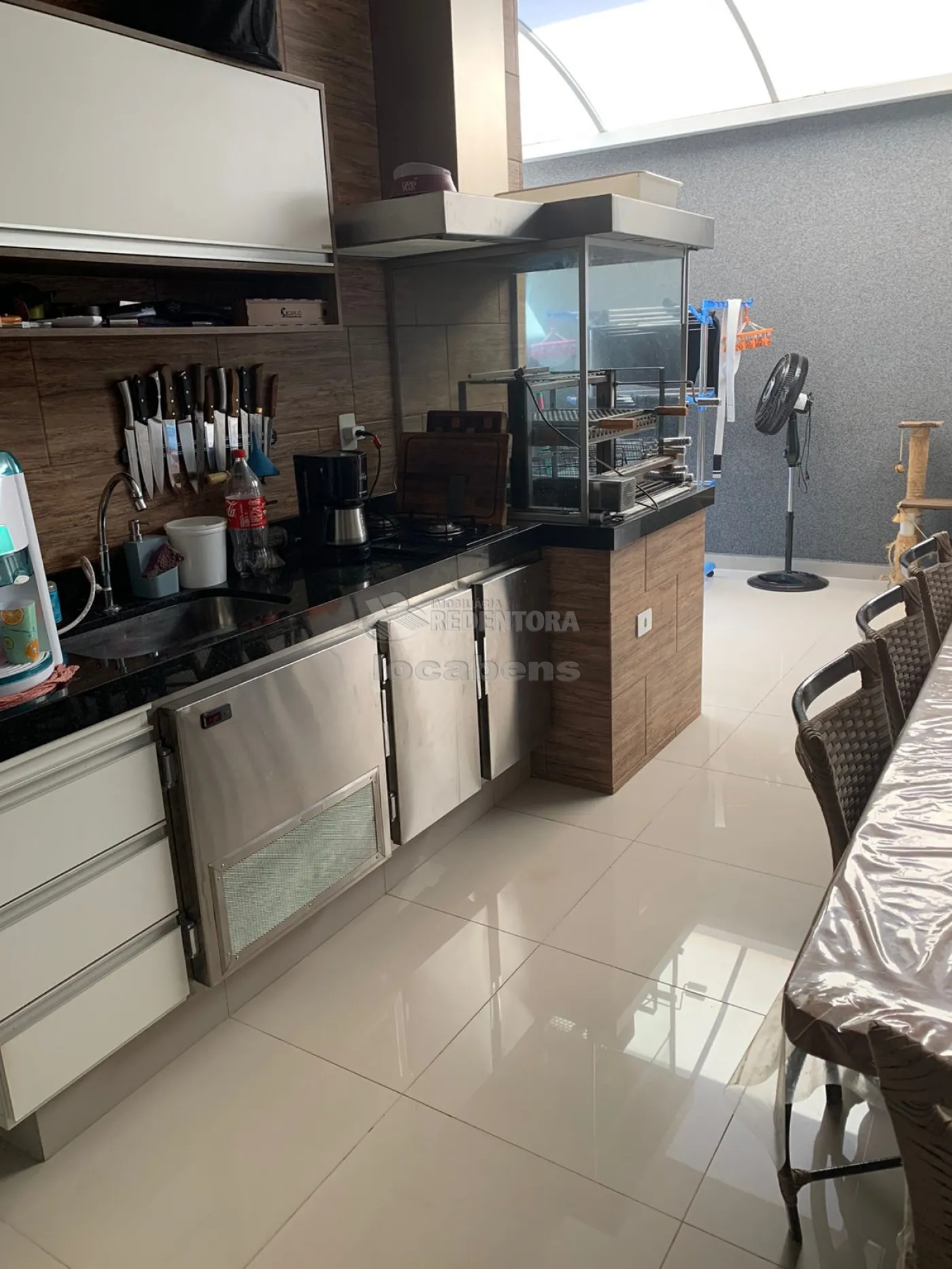 -área gourmet com churrasqueira, balcão refrigerado, fechada, perfeita para uso de ar condicionado;