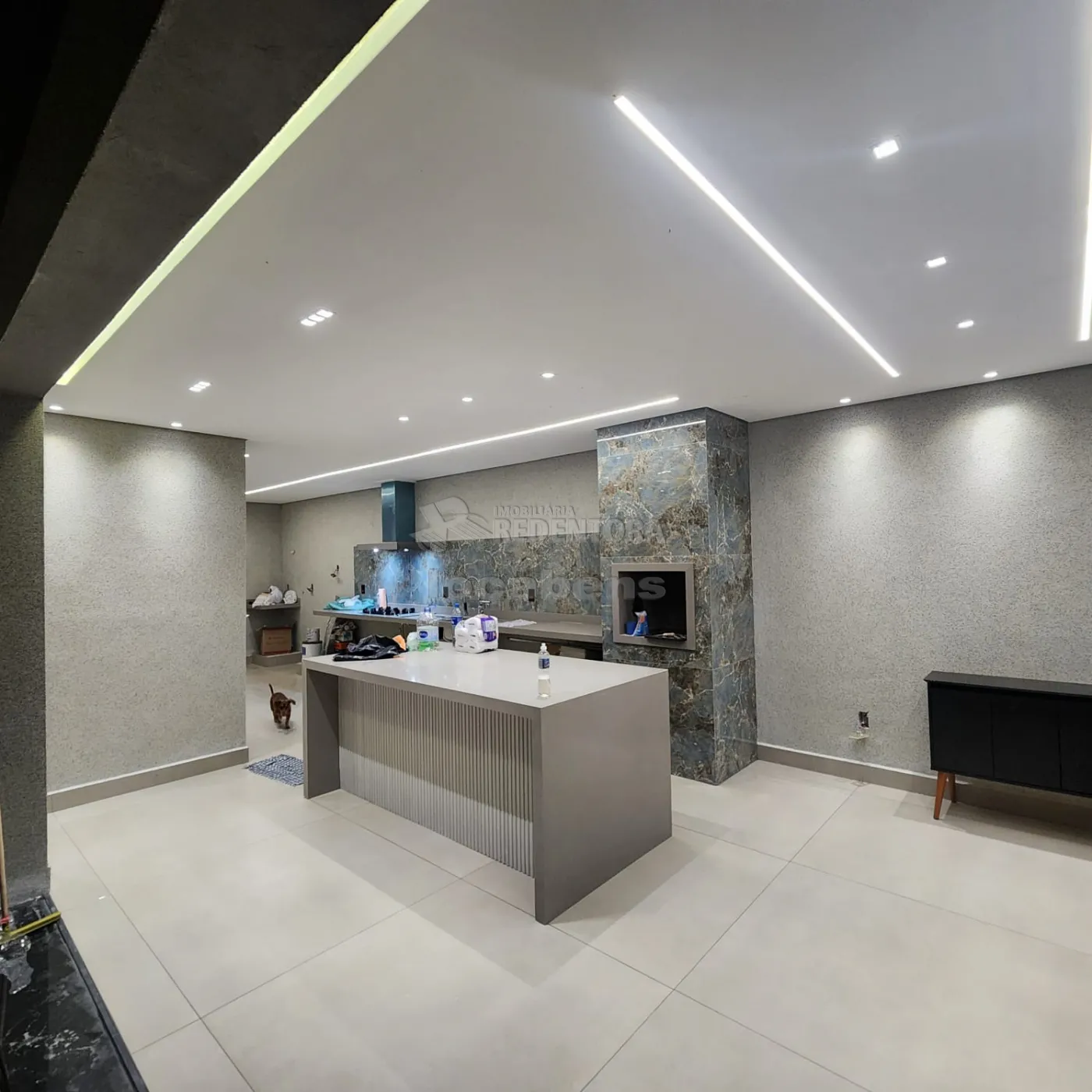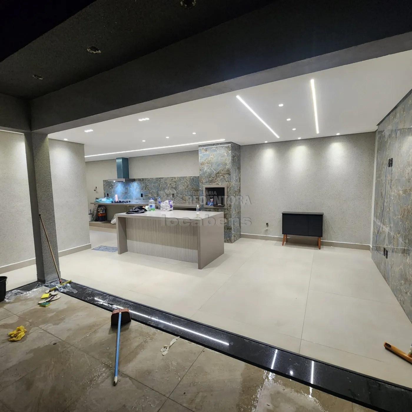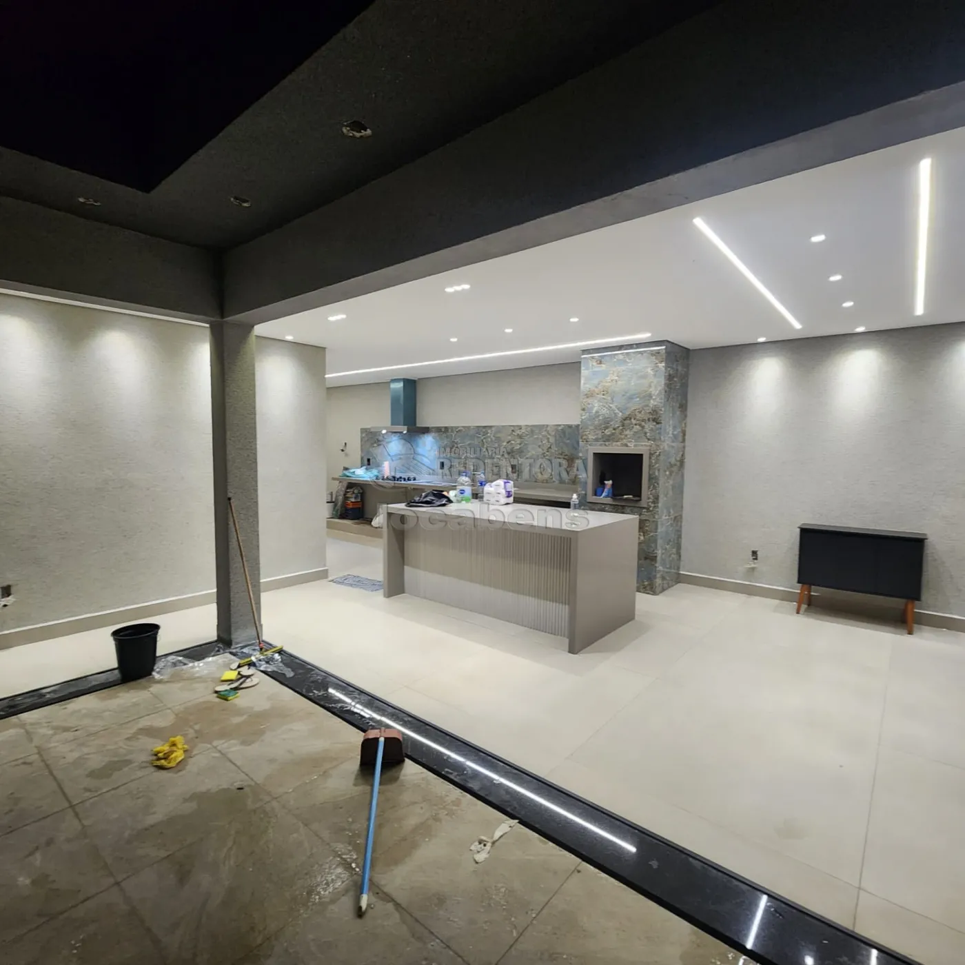 - Cozinha com churrasqueira e balcão refrigerado