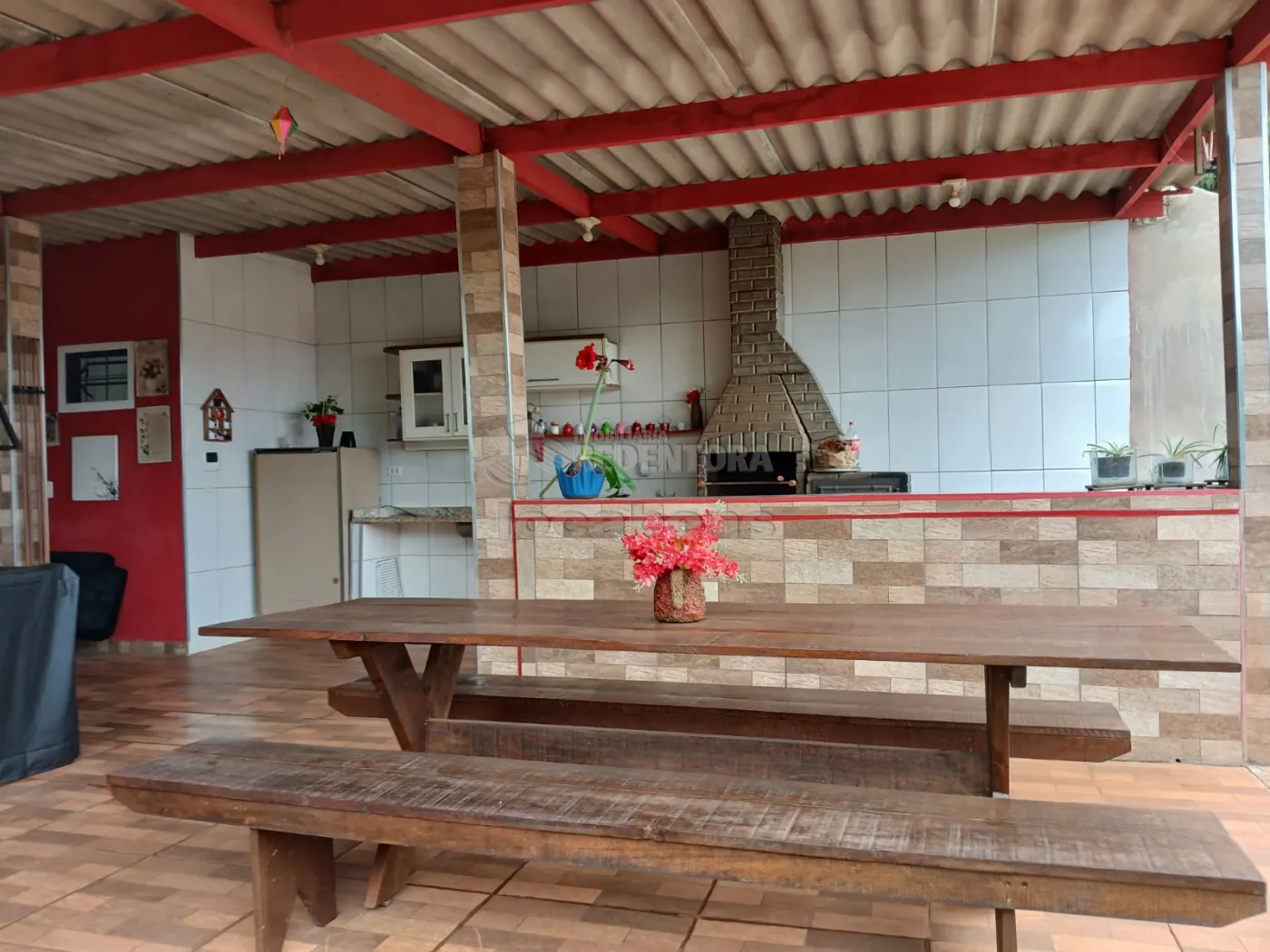 02 dormitórios 01 suíte, 01 banheiro social, sala, cozinha grande, área de serviço, com mais 01 quarto, 01 banheiro, churrasqueira.